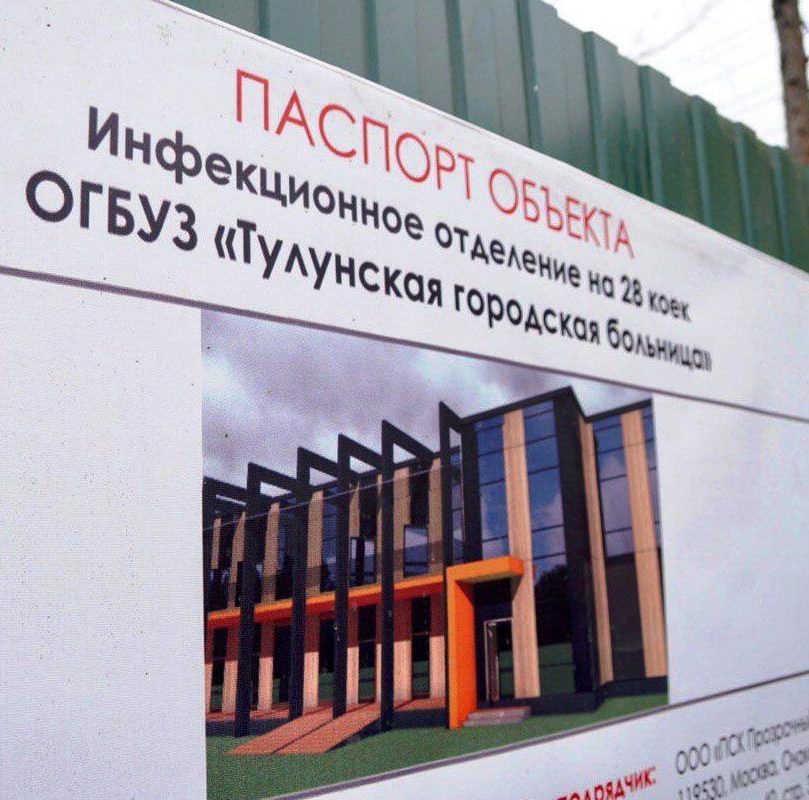 Глава региона оценил проект строительства инфекционного отделения на 28 коек ОГКБУЗ «Тулунская городская больница» в том же микрорайоне Угольщиков. Отделение будет состоять из нескольких корпусов: лечебно-диагностического, расположенного в двухэтажном здании; санитарной площадки для обработки транспорта; корпуса технических и вспомогательных зданий и сооружений. Заказчиком социального объекта выступает ПАО «Сбербанк». Такого отделения нет нигде в области. Оно будет полностью разделено на боксы.